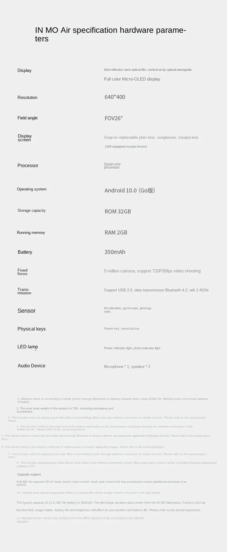 INMO Air Smart AR okuliare s prekladom prstena a textovým upozornením 3D s kamerou na sledovanie filmov plnofarebné skutočne bezdrôtové